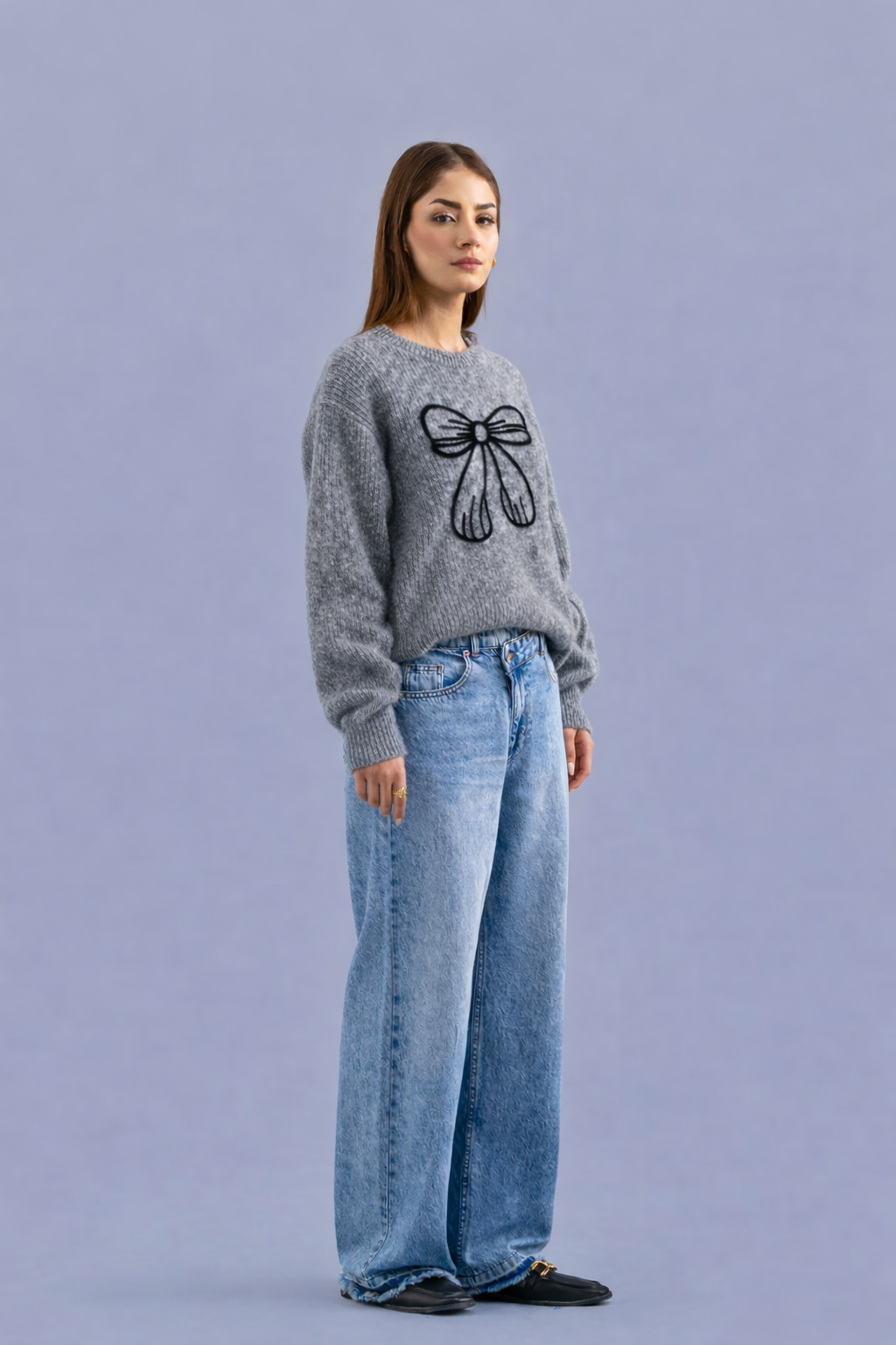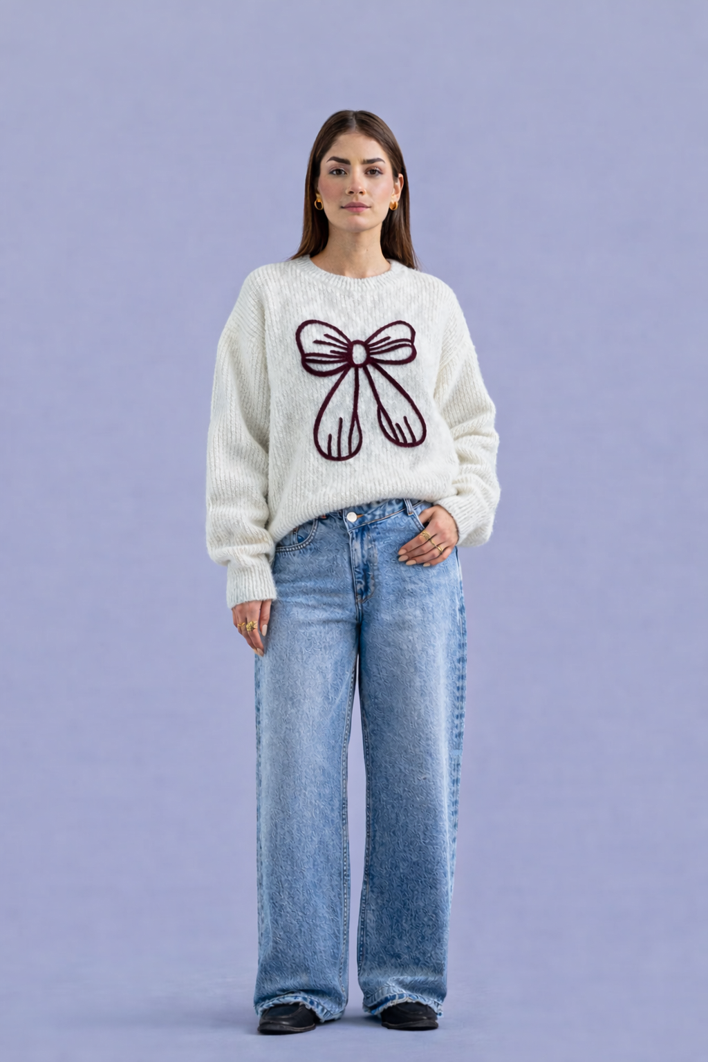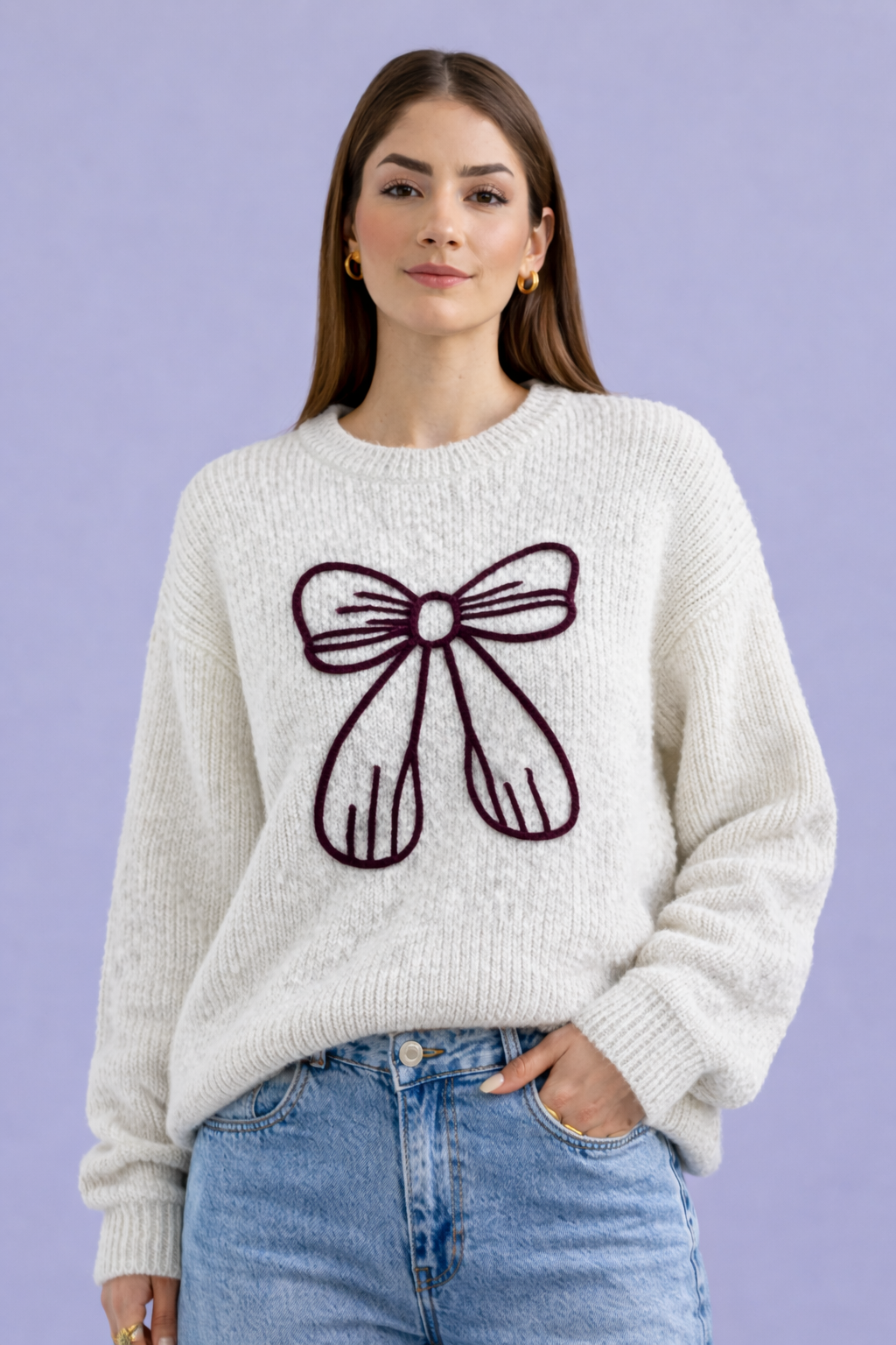A stylish and versatile piece, this Casual Bow Embroidered Sweater is perfect for women who love playful, trendy fashion with a cozy, everyday feel.